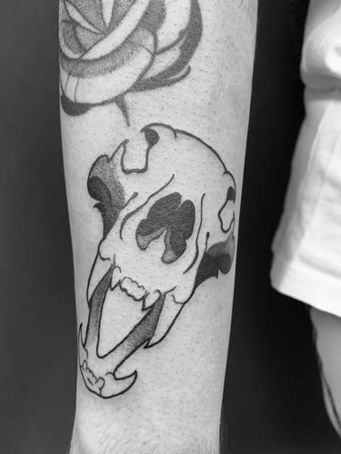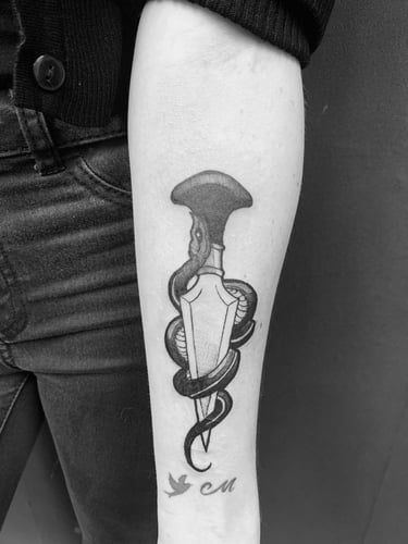 Detenteur d'un diplôme DNMAD design et des arts graphiques, je suis passionné par tout type de tatouages mais affectionne plus particulièrement le style neotraditionnel blackwork. Je suis diplômé hygiène et salubrité